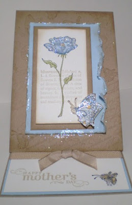 Unfortunately it is not an original idea I found it on the Splitcoast stampers website, the original card was made by Kirsteen Gill. Being an easel card it stands up well, I have added a different butterfly &